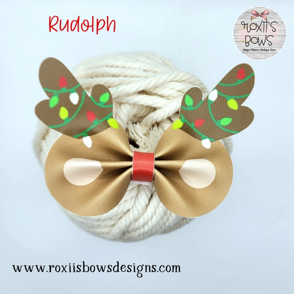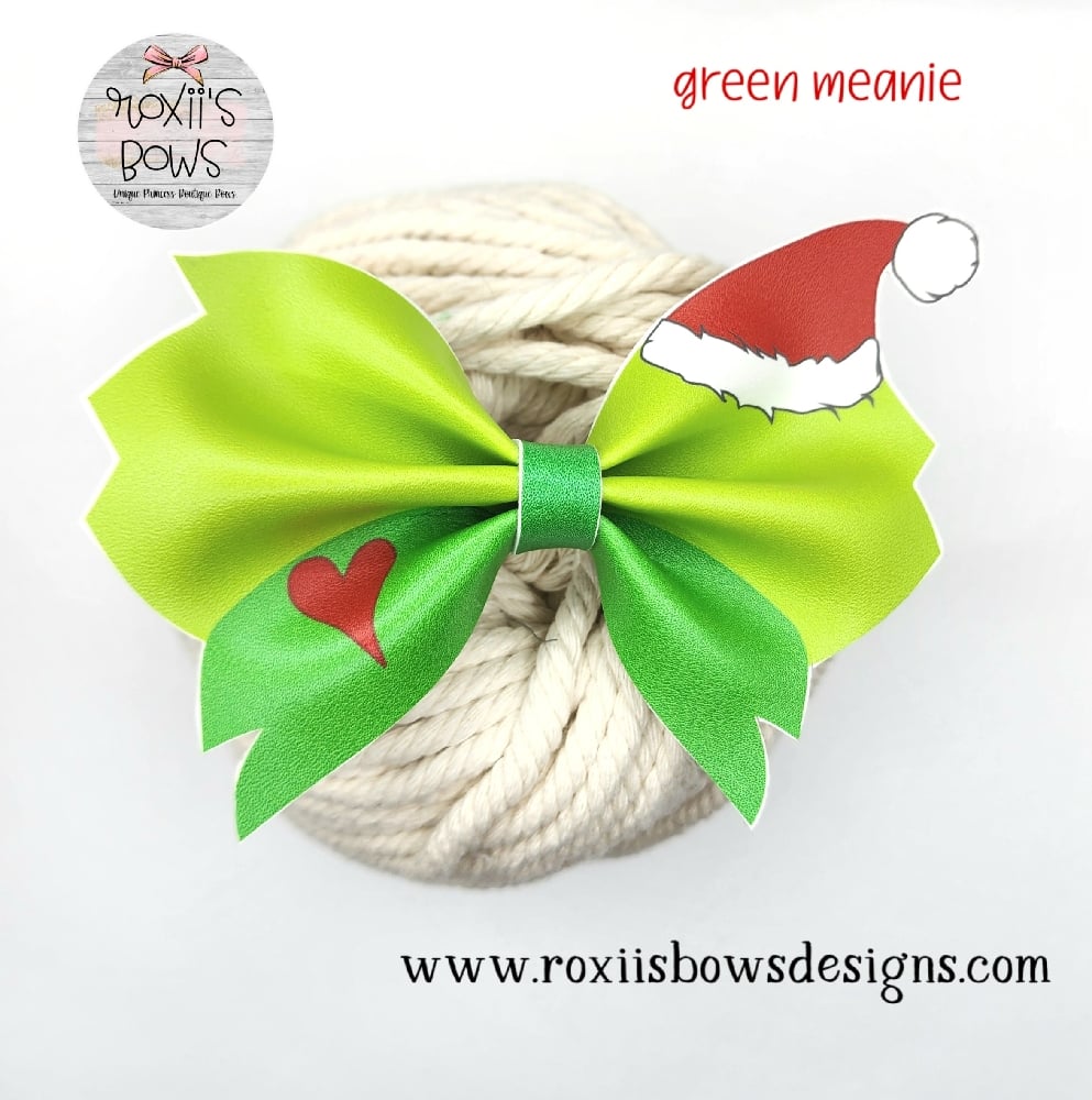 Celebrate the holiday season with these vibrant faux leather Christmas bows, featuring playful seasonal designs like candy canes, reindeer antlers, and Santa hats. Each bow adds a fun, festive touch to any outfit or gift, crafted with eye-catching colors and charming holiday motifs that bring cheer and style together.