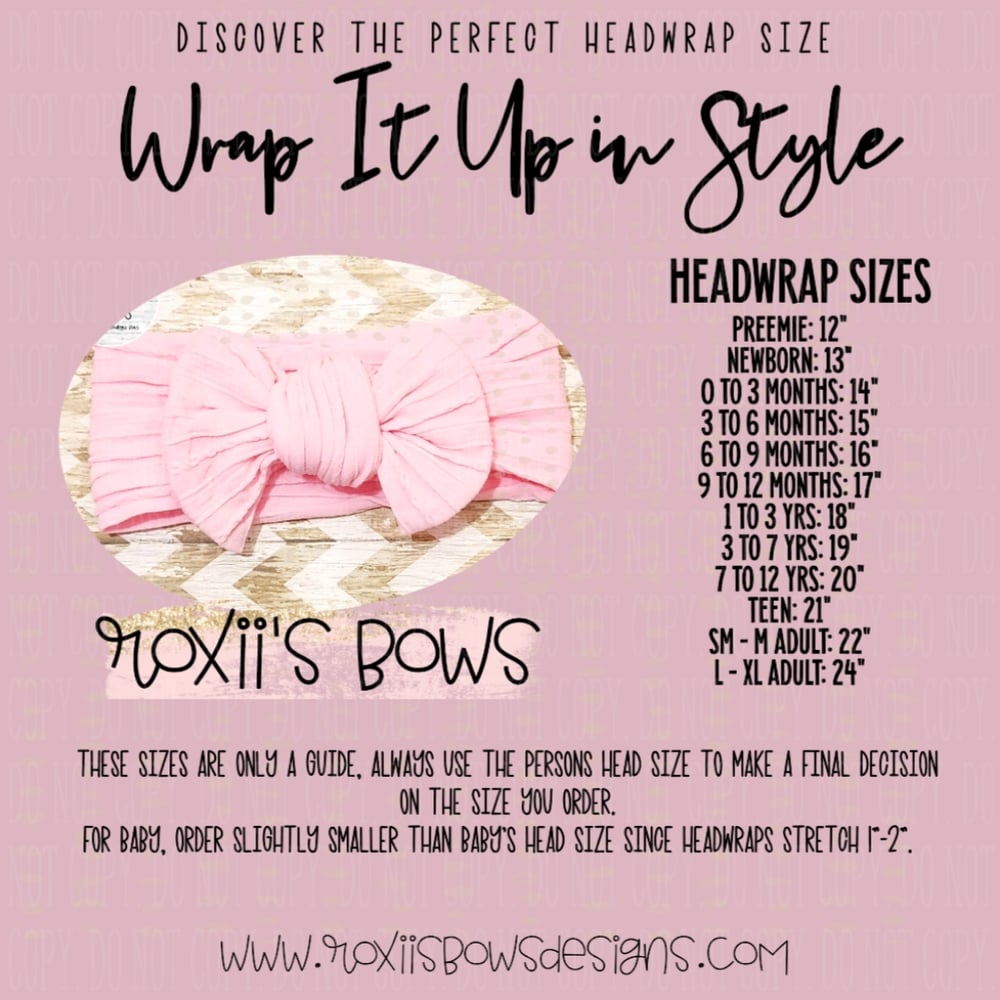 FOR BABY, ORDER SLIGHTLY SMALLER THAN BABY'S HEAD SIZE SINCE HEADWRAPS STRETCH I"-2".