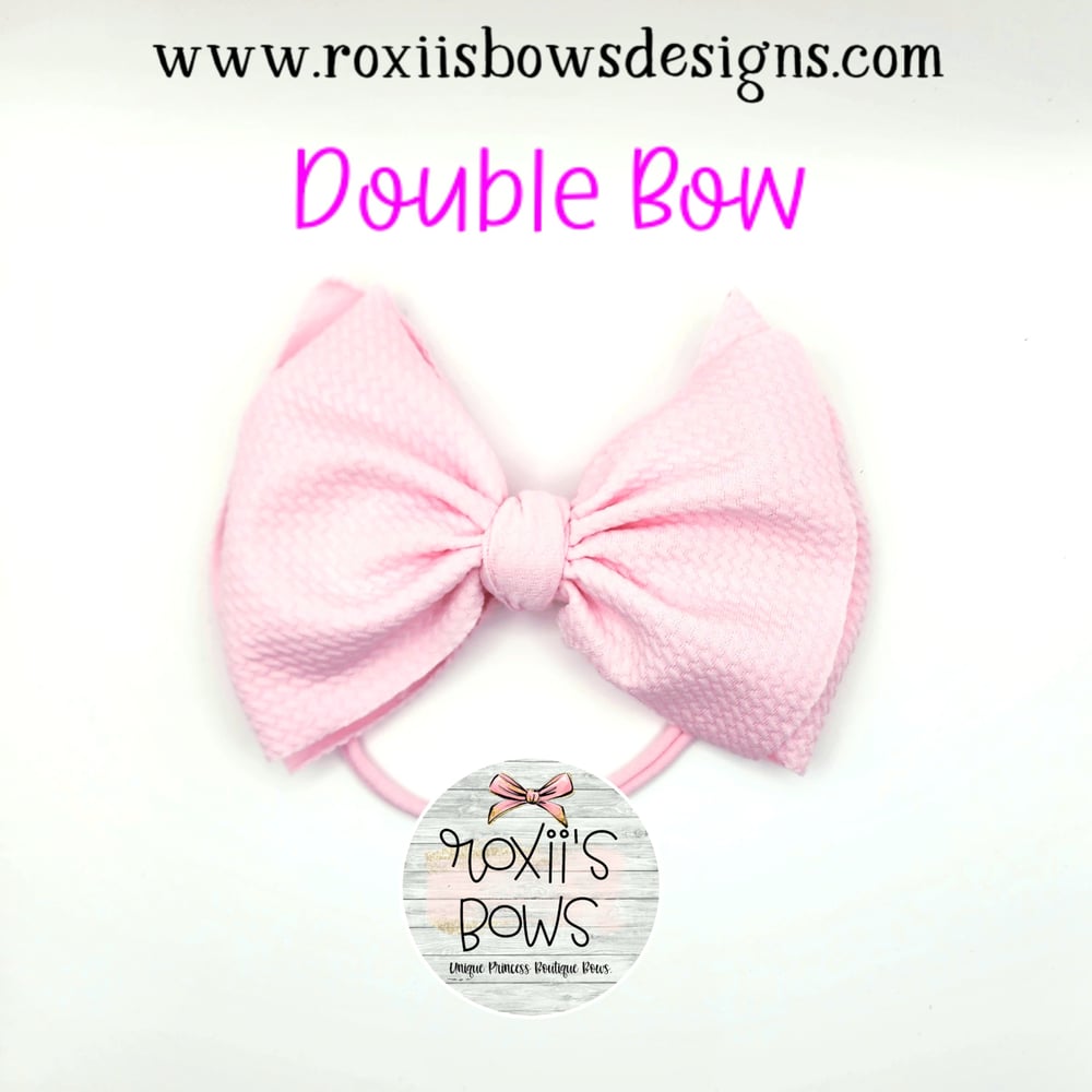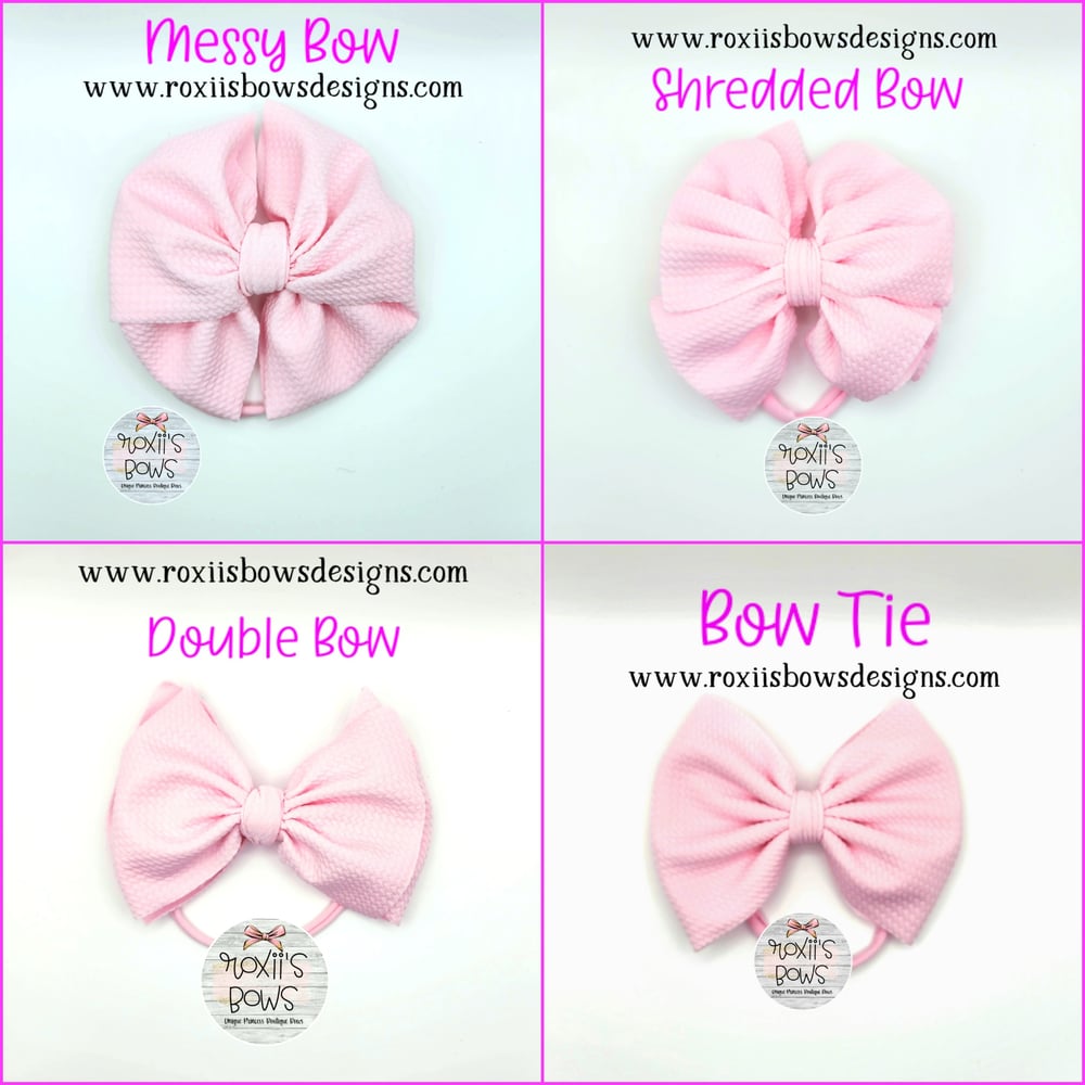 5" fabric bow attached to a stretchy headband. These beautiful bows are made with a lightweight, but sturdy fabric.