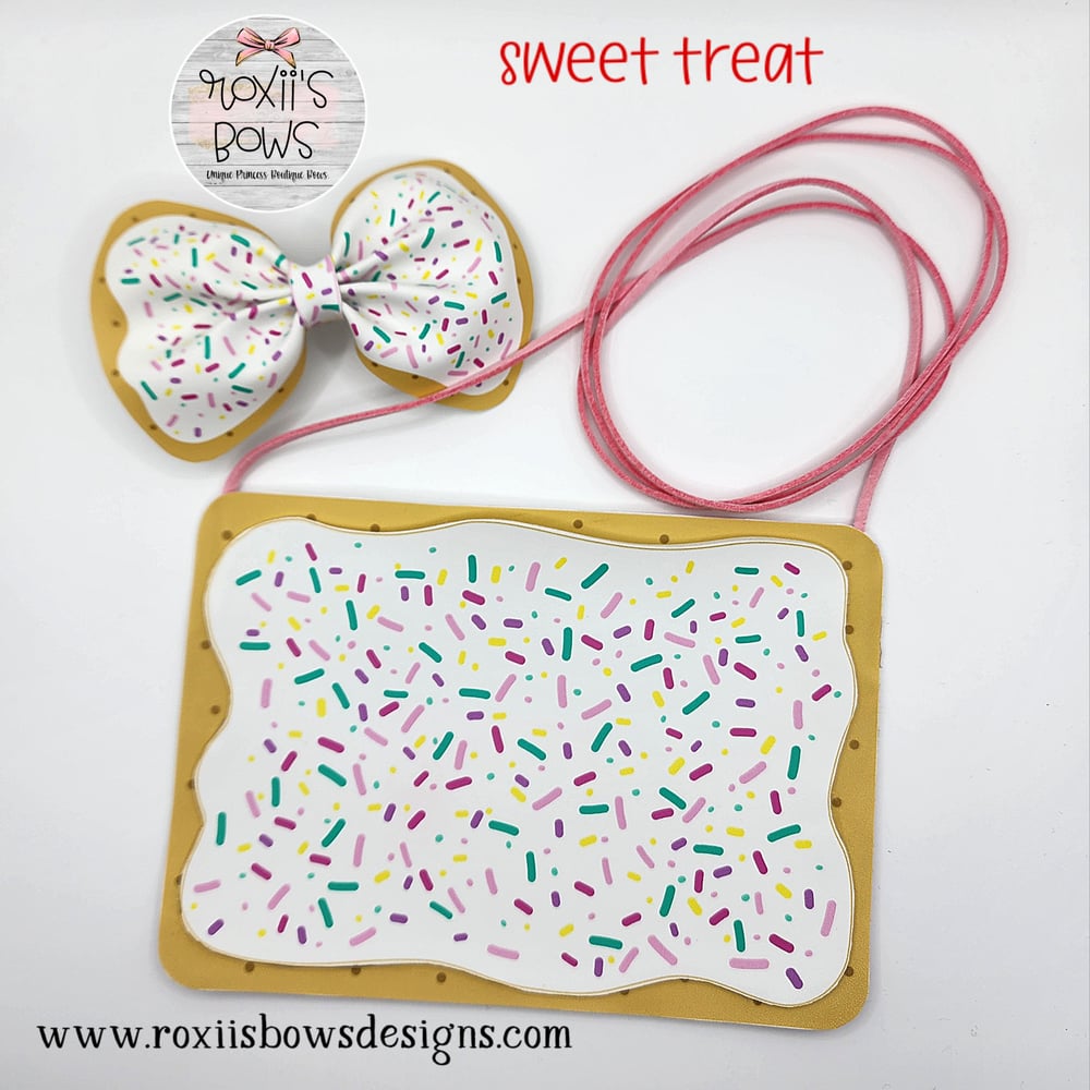 Sweet Treats: 4.5"h×7.5"w includes a matching 4" bow attached to an alligator clip with teeth